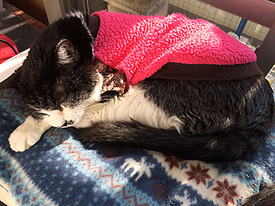 当然、ねこさんたちはいそいそとそこへ行き、ひなたぼっこをはじめます。