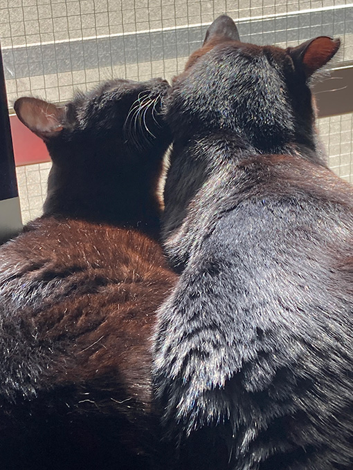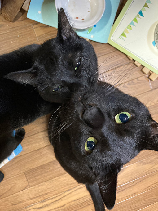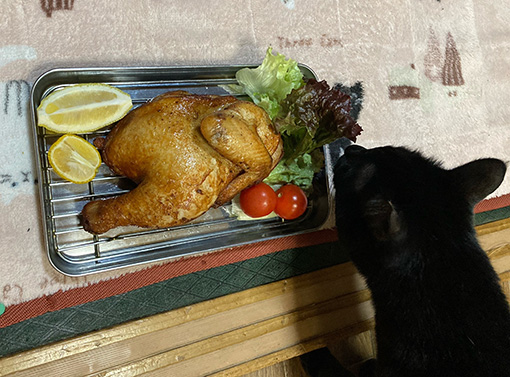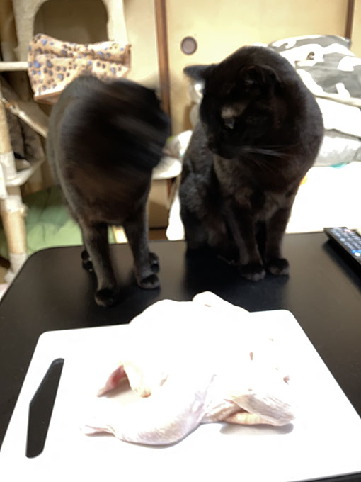 今日のくろねこ チキンとご対面その2 あられさんは少しだけ興味あり⁈